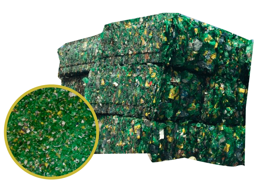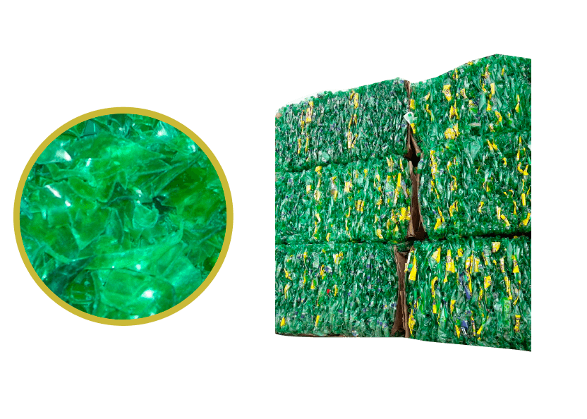 4. PET verde con serigrafía o impresión molido y cernido (botella)